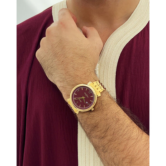 Montre homme chiffres arabes GOLD/BURGUNDY